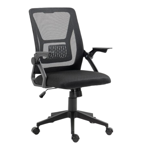 Seu encosto em malha permite circulação de ar, evitando desconforto térmico, enquanto o assento acolchoado oferece suporte macio e firme.